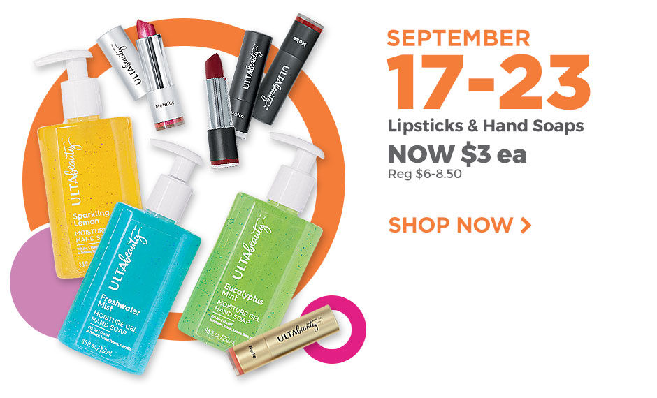 Ulta 多種美容品只要$3 by evasdealclub · September 19, 2017 Ulta 21天的美麗推廣活動 每週都促銷不同的美容品 本週最後一周 口紅和洗手乳只要$3 (原價$6-$8.50) 購買點這邊 免運費訂單滿$50元 Share