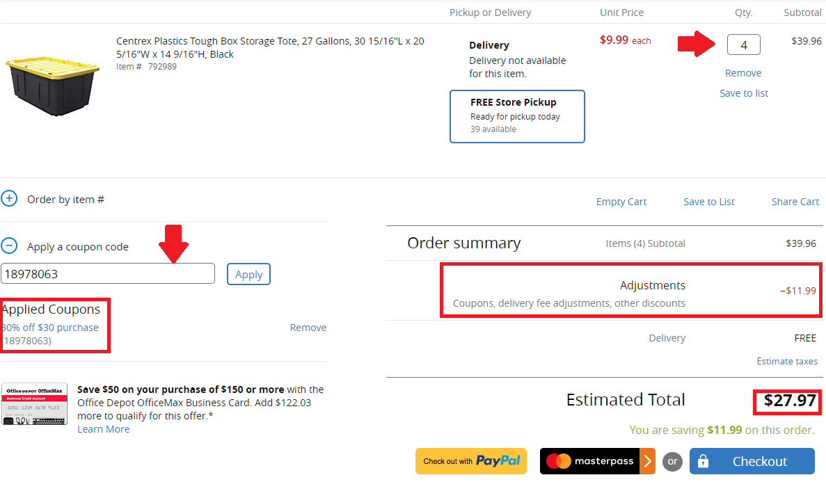 [11/12更新] HDX 27加侖儲物箱 超值特價4個$27.97 by evasdealclub · Published September 27, 2017 · Updated November 12, 2017 Office Depot 促銷HDX 27加侖儲物箱 $9.99 購買4個使用Eva特別促銷折扣碼 67680015 再減$11.99 = 4個是$27.97 購買連結 OMG . . . 比Amazon便宜很多 (Amazon 售價 兩個$49.74 = 4個是$99.48) ! ! ! 示例購物車 Share
