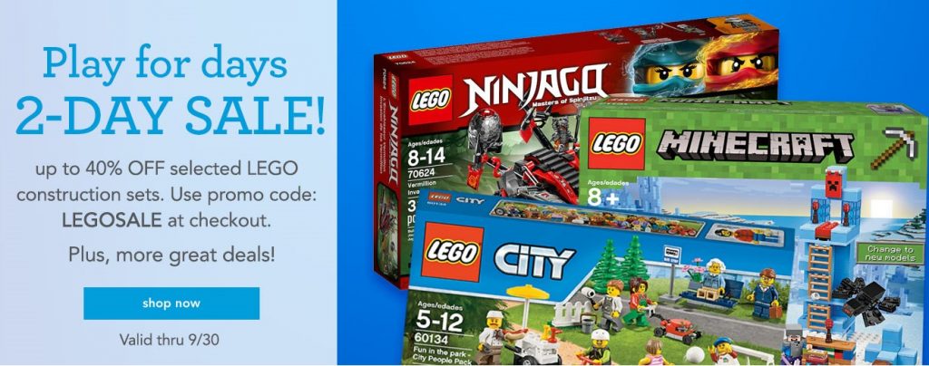 多種LEGO促銷40%折扣 (只有今天) by evasdealclub · September 30, 2017 ToysRUs 促銷多種LEGO 40%折扣 Eva特別促銷折扣碼 LEGOSALE 購買連結 送貨是$5.99或免運費當你訂單滿$29。促銷有效期至9月30日 (只有今天)。 Share