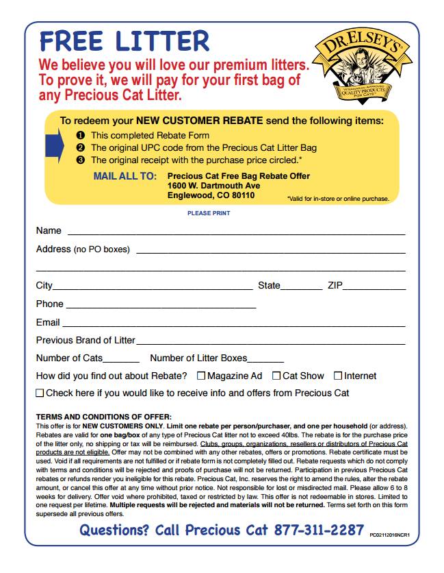 請问Eva, 那个rebate, 是要等到收到貓沙時オ能寄嗎? 謝谢!