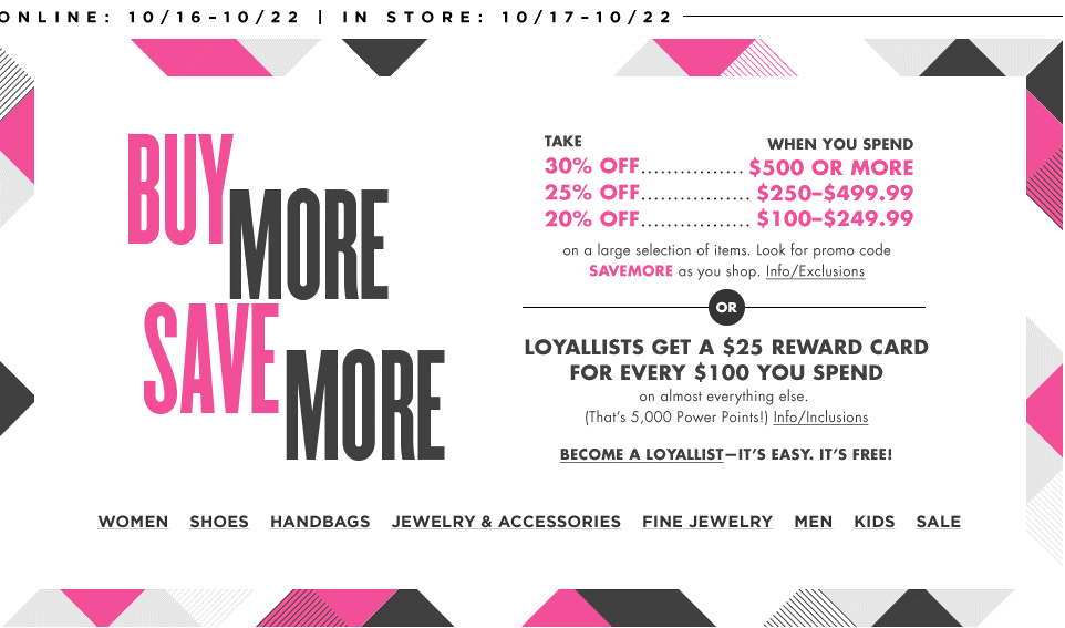 Bloomingdales 20%-30%額外折扣 by evasdealclub · Published October 17, 2017 · Updated October 17, 2017 使用Eva特別促銷折扣碼 SAVEMORE 有額外折扣 購買連結 花費$100至$249.99獲得20%額外折扣 花費$250至$499.99獲得25%額外折扣 花費超過$500獲得30%額外折扣 促銷有效期至10月22日。 Share