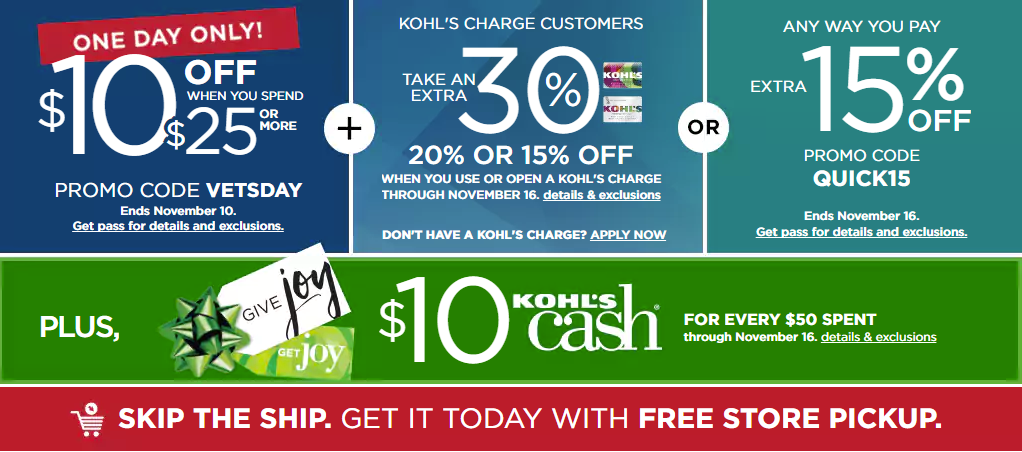 Kohl’s 退伍軍人節1天促銷 (只有今天)