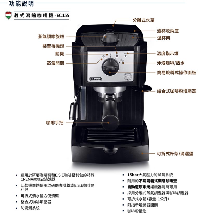 DeLonghi EC155M 咖啡機 最低特價$59.99 by evasdealclub · Published November 12, 2017 · Updated November 12, 2017 Amazon 定價$99.95 歷史最低價$59.99 購買連結 Amazon 平均價 $98.61 產品介紹 不鏽鋼加熱鍋爐 專利式二合一咖啡濾杯及手把 自動待機系統 旋轉式開關及指示燈 Share