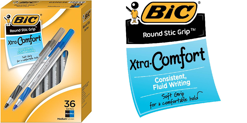 BIC Round Stic Grip Xtra Comfort 圓珠筆 黑/藍Medium Point (1.2 mm) 36件裝 歷史低價$2.85 (可郵寄全球)
