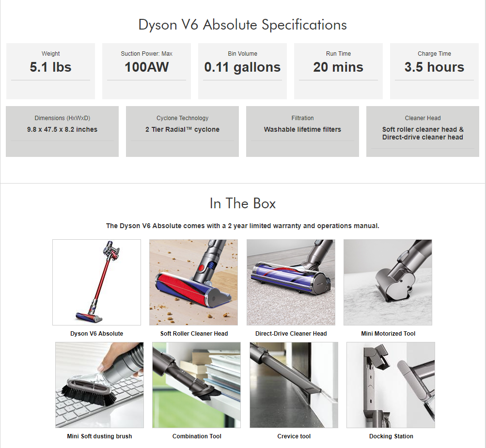 Dyson V6 Absolute+3個選擇工具 特價$289.99+免運費 by evasdealclub · January 22, 2018 Dyson 定價$599.99 特價$289.99 購買連結 送3個免費的選擇工具+免運費。 產品介紹 Share