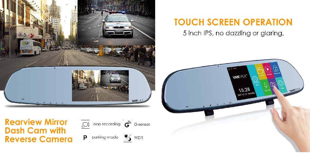 Vantrue N3 5″ IPS觸摸屏 1080P前後雙鏡頭行車記錄器 歷史低價$79.99 (可郵寄全球)