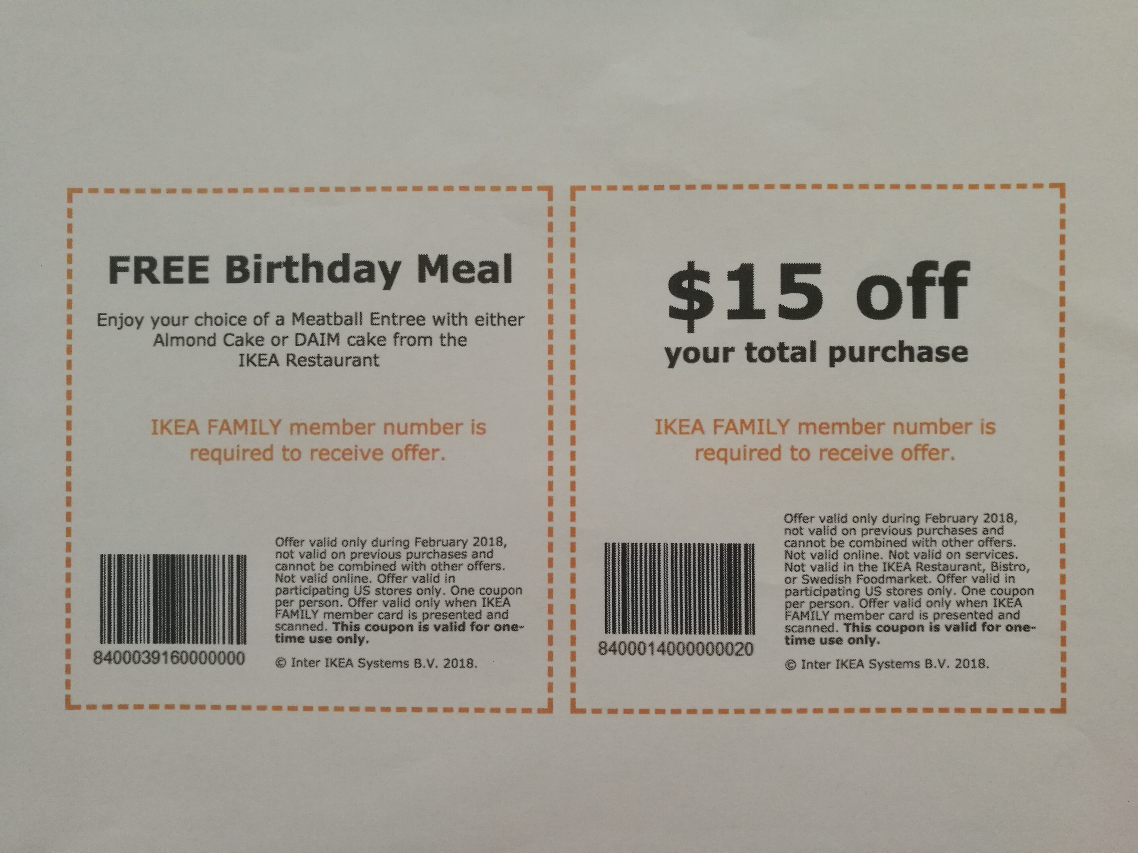 二月出生的朋友,可以在IKEA餐廳吃免費生日餐!然後在IKEA買任何東西,可獲得$15折扣。生日優惠券連結
