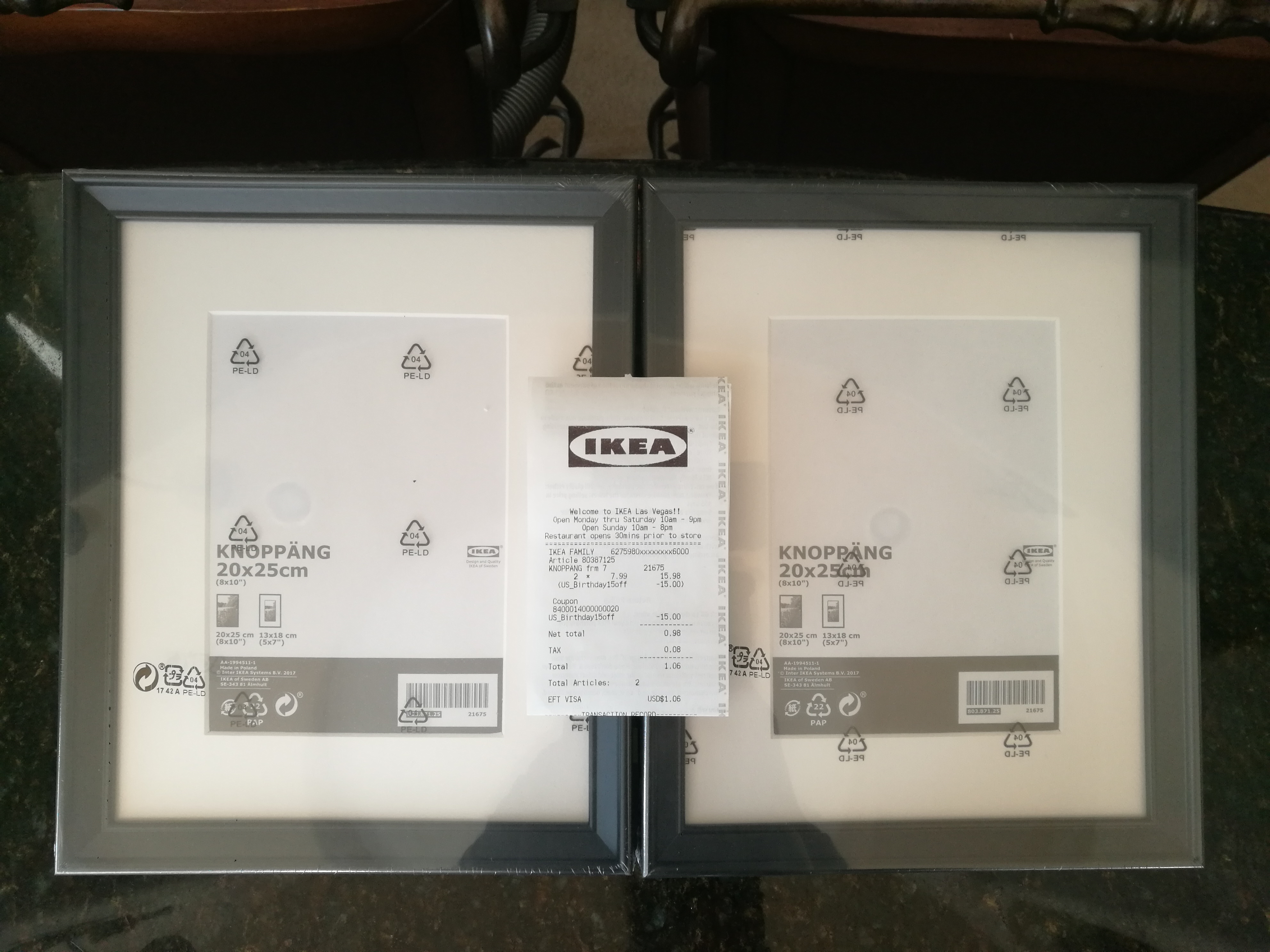 哈哈哈!這就是IKEA送我的生日禮物!買了兩個8X10的相框,只是補$1.06而已,真是棒極了!