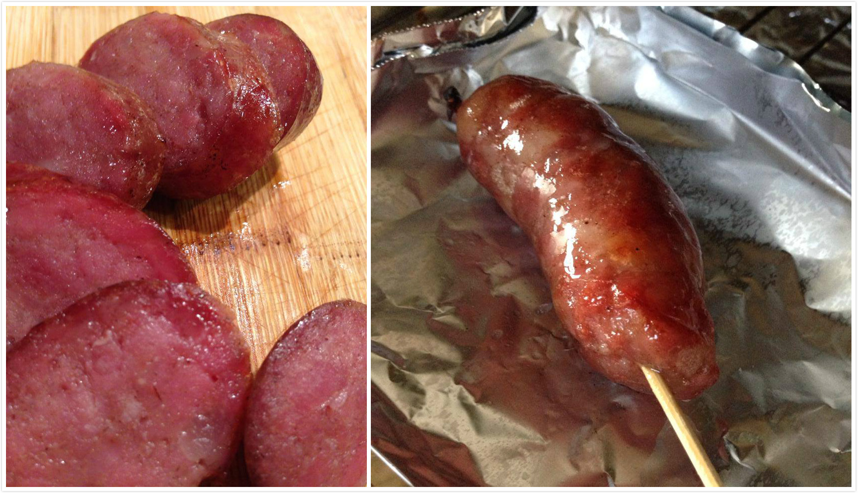P.S. 香腸有加亞硝酸鹽,是為了食品安全,防止肉毒桿菌的孳生。如果沒有硝煙,是做不出來那個略略發酵風味的”路邊攤灌強”的味道喔!