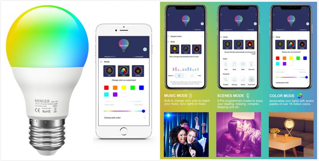 - ♪[Color Change Sync to Music] – 使用1600多萬種顏色和單色調色板個性化您的MINGER RGB光源。我們的智能燈泡燈可根據音樂旋律的節奏改變顏色。您可以根據自己的喜好或正在播放的音樂選擇動態節奏或柔和節奏。