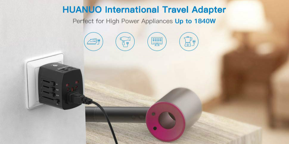 HUANUO旅行插頭使用150多個國家1840W電源轉換器 歷史低價$14.99