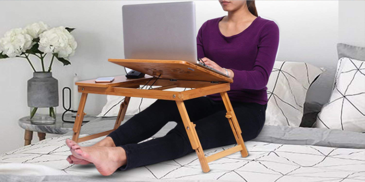 Modrine竹製可調節便攜式托盤筆電桌 特價$26.39
