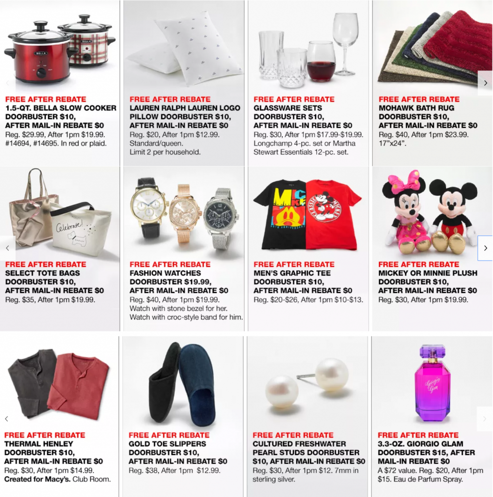 Macy’s 黑五促銷多種商品在店內,全部Rebate後免費!這些商品都是店內 Doorbuster, 因此必須在店內購買才能獲得rebate資格。