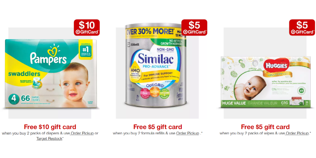 在Target 購買嬰兒用品 可獲得高達$20禮品卡 by evasdealclub · Published January 8, 2019 · Updated January 8, 2019 在Target 購買兩包尿布並選擇在店內取貨,可獲得$10 Target 禮品卡 購買連結 在Target 購買兩個包嬰兒配方奶粉並選擇在店內取貨,可獲得$5 Target 禮品卡 購買連結 在Target 購買兩包嬰兒濕巾並選擇在店內取貨,可獲得$5 Target 禮品卡 購買連結 使用Target紅卡獲得額外5%的折扣並免運費 申請連結 Share