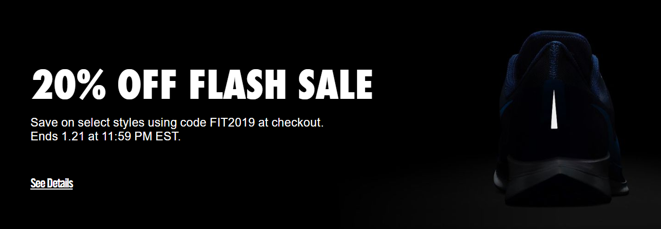 Nike 閃電促銷20%額外折扣 特價$5.58起+免運費 (只到1月21日) by evasdealclub · Published January 19, 2019 · Updated January 19, 2019 Nike 所有閃電促銷商品 使用Eva特別促銷折扣碼 FIT2019 有20%額外折扣 (折扣後$5.58起) 男裝 購買連結 女裝 購買連結 男孩 購買連結 女孩 購買連結 所有減價商品 購買連結 Nike+ 會員有免運費資格。 成為Nike+會員是免費的。Nike+會員 註冊連結 折扣碼有效期至1/21。 Share