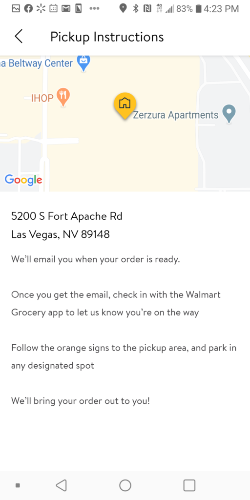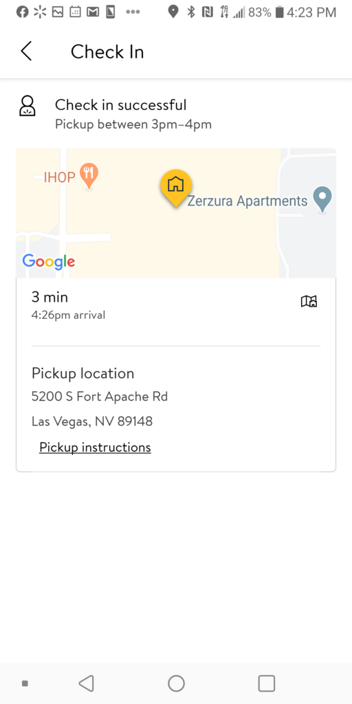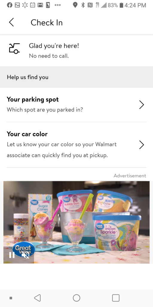 7.到達領貨區停車格要用 Walmart Grocery app 報到