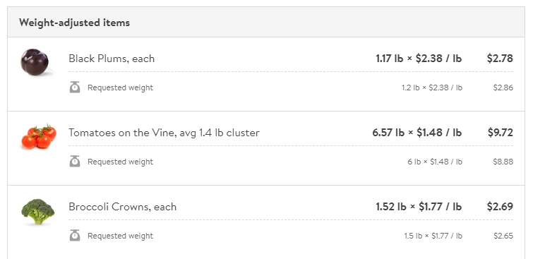 - 購物訂單結帳時,網站會先多預算金額,因為生鮮食物要秤重。