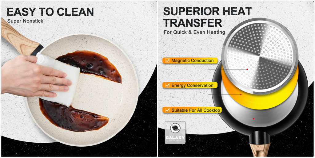 - 多功能:此8英寸煎鍋的石材塗層適用於電磁爐,電爐灶,燃氣,玻璃和所有類型的爐灶。它提供了極佳的食物釋放效果,非常適合在中低熱量,少油的條件下使用。容易清理。