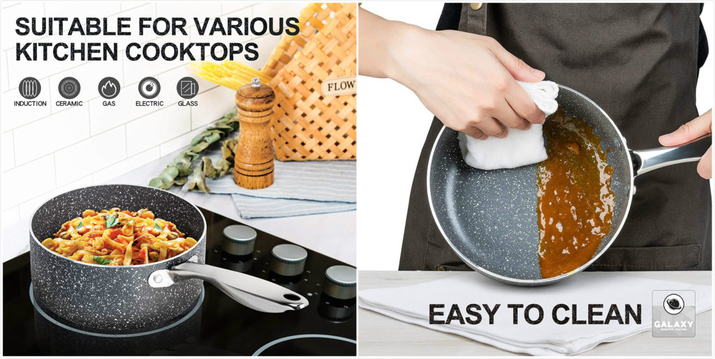 - 【環保不粘花崗岩塗層,易於清潔】-天然石材是健康烹飪的理想選擇。選擇米開朗基羅石材小湯鍋可以更環保,更安全地烹飪。100%不含APEO和PFOA。