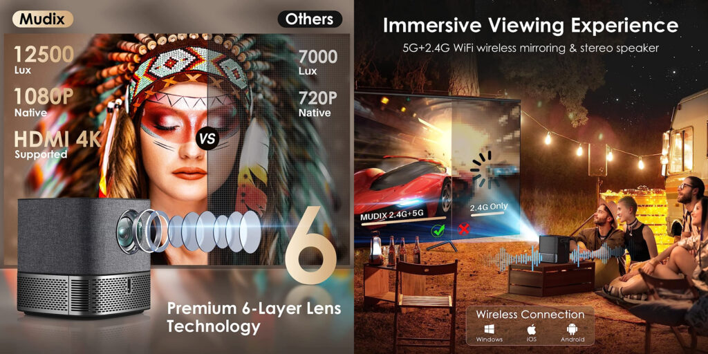 MUDIX Native 1080P 5G WiFi 投影機 歷史低價$129.99