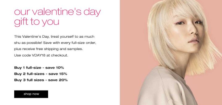Shu Uemura / 美容美髮 / 超值促銷 February 8, 2018 by evasdealclub · Published February 8, 2018 Shu Uemura Art of Hair 情人節促銷所有美髮產品高達20%折扣+免運費