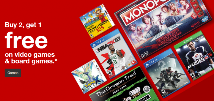 Target / 生活百貨 / 超值促銷 October 29, 2017 by evasdealclub · Published October 29, 2017 Target 所有電動遊戲和棋盤遊戲 買2送1+免運費