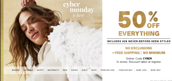Gap / 流行服飾 / 網一促銷 November 26, 2017 by evasdealclub · Published November 26, 2017 Gap 網絡星期一促銷50%折扣+10%額外折扣+免運費 現在開始!