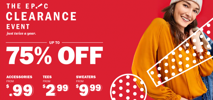 Old Navy / 流行服飾 / 超值促銷 / 閃電促銷 January 4, 2019 by evasdealclub · Published January 4, 2019 Old Navy 清貨大促銷 高達75%折扣+額外40%折扣 特價$0.58起 (只限今天)