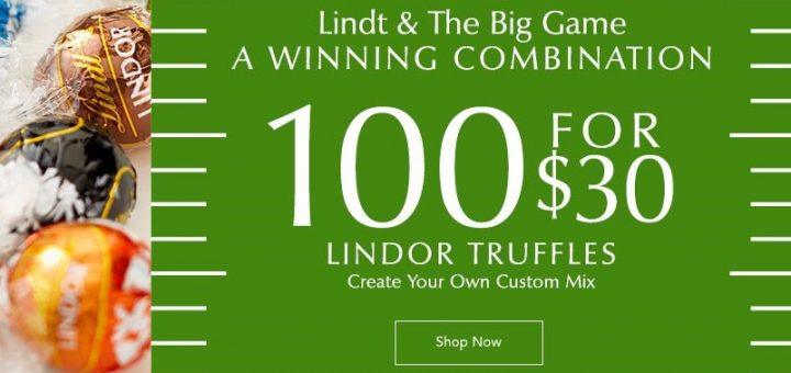 Lindt / 佳餚美食 / 超值促銷 February 4, 2018 by evasdealclub · Published February 4, 2018 Lindt 瑞士蓮 Super Bowl 促銷 Lindor Truffles 100個自選組合 特價$30.00